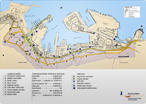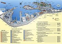 En el presente plano podrá conocer la distribución de las infraestructuras e instalaciones del puerto. Pulsando sobre cada etiqueta resaltada tendrá acceso a la información correspondiente.